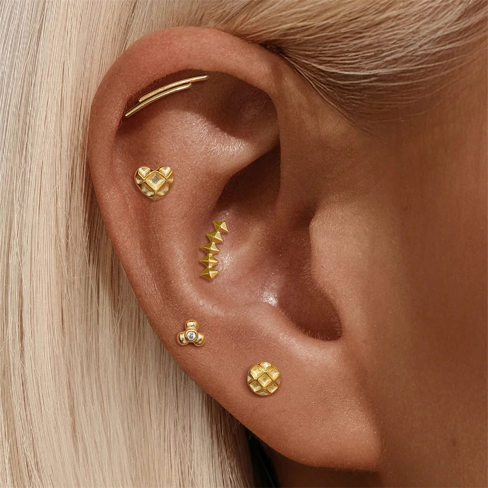 3 יחידות עגילי חישוק תלויים ייחודיים עם זירקונים מעוקבים לנשים עגילי חישוק זעירים עם 3 חורים לא תואמים באוזן