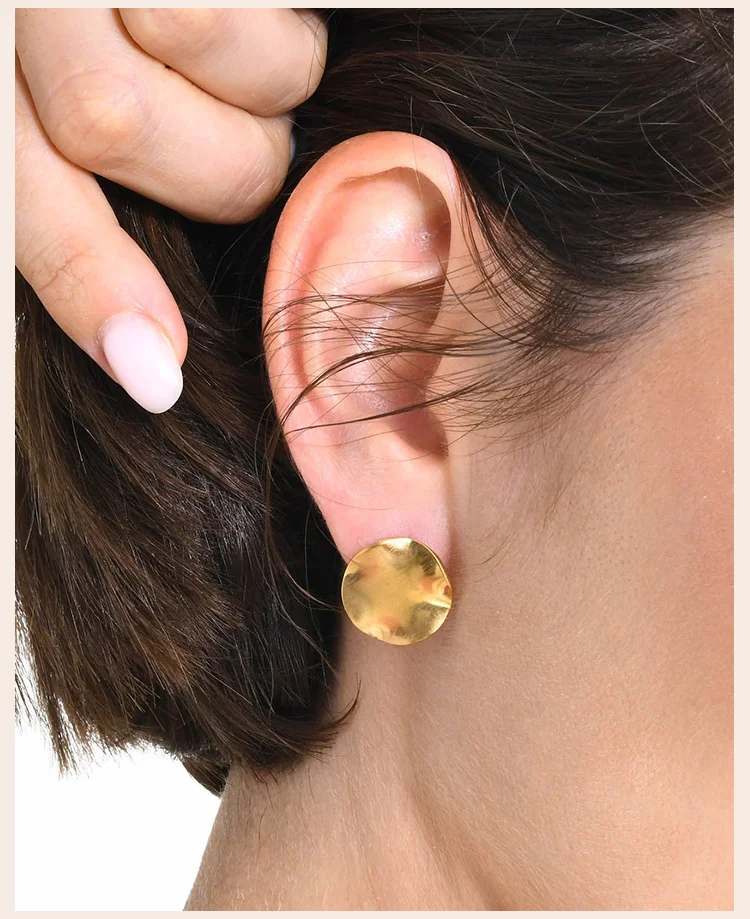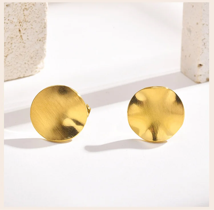 עגיל דיסק עגול מט לנשים, עגיל פוסט נירוסטה טרנדי פשוט ואופנתי תכשיטים גיאומטריים