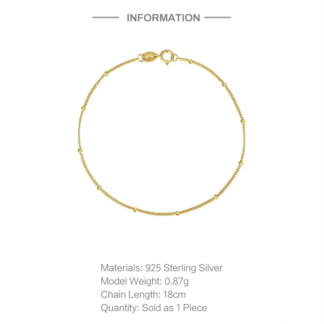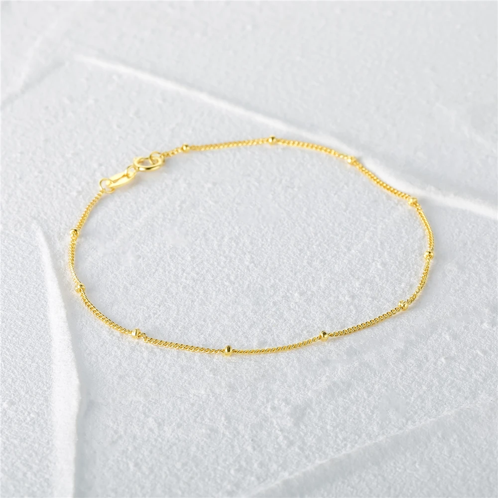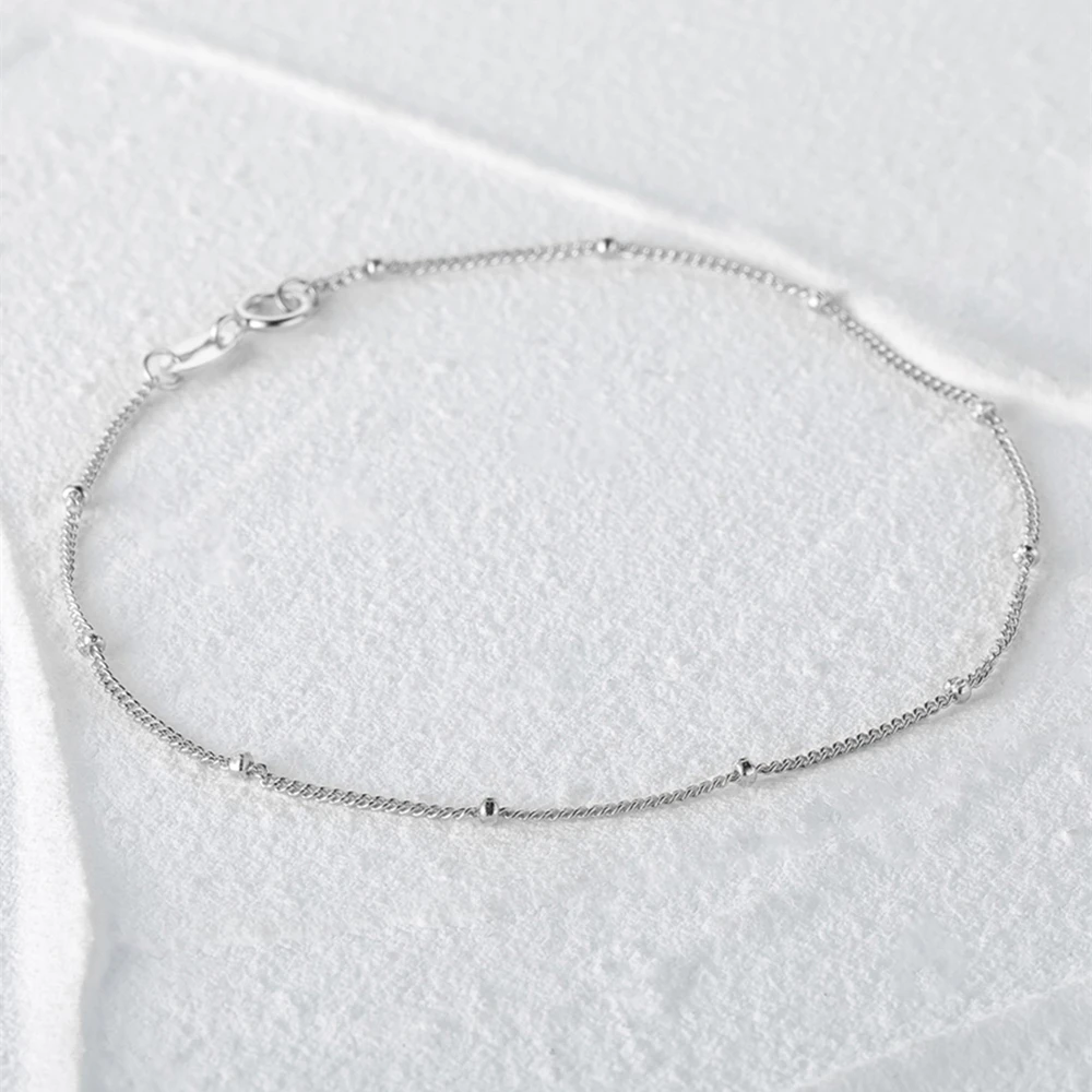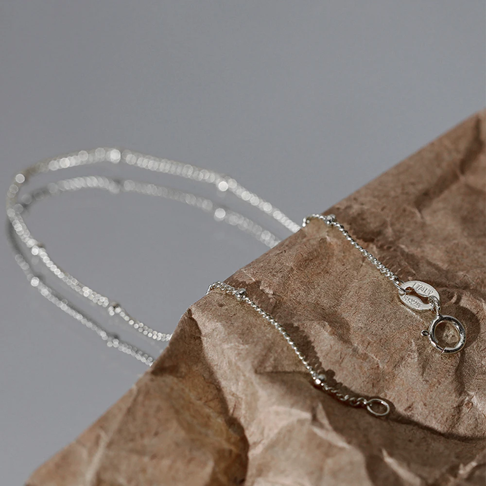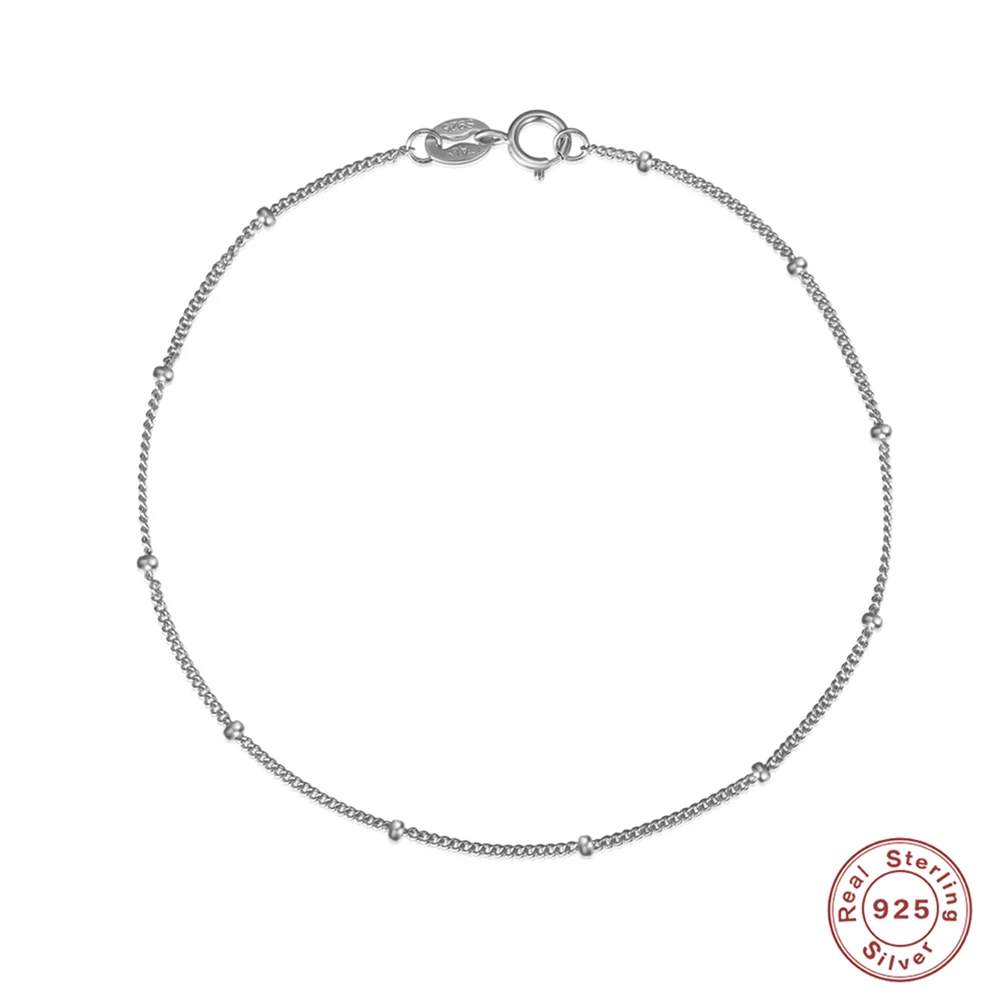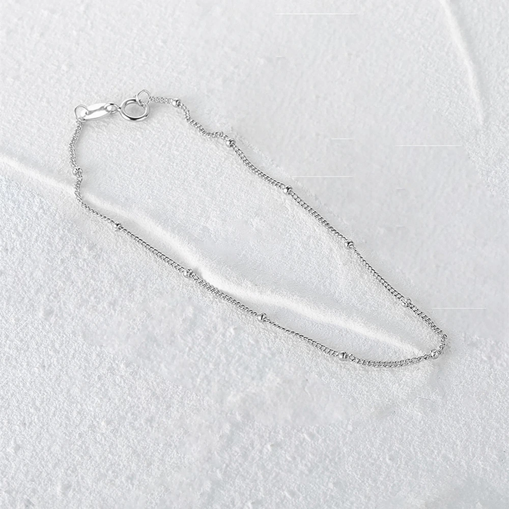 צמיד כסף סטרלינג 925 : צמיד שרשרת חרוזים דקים זעירים