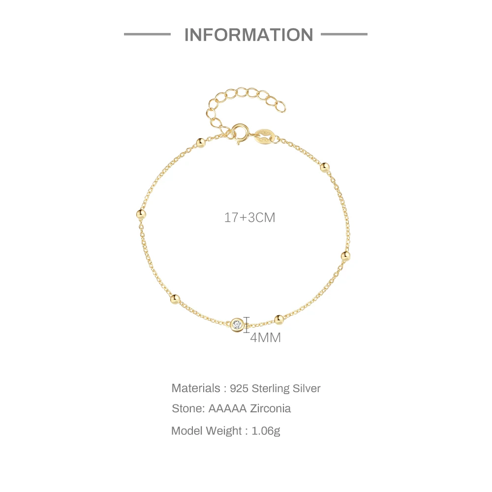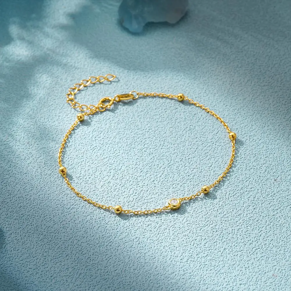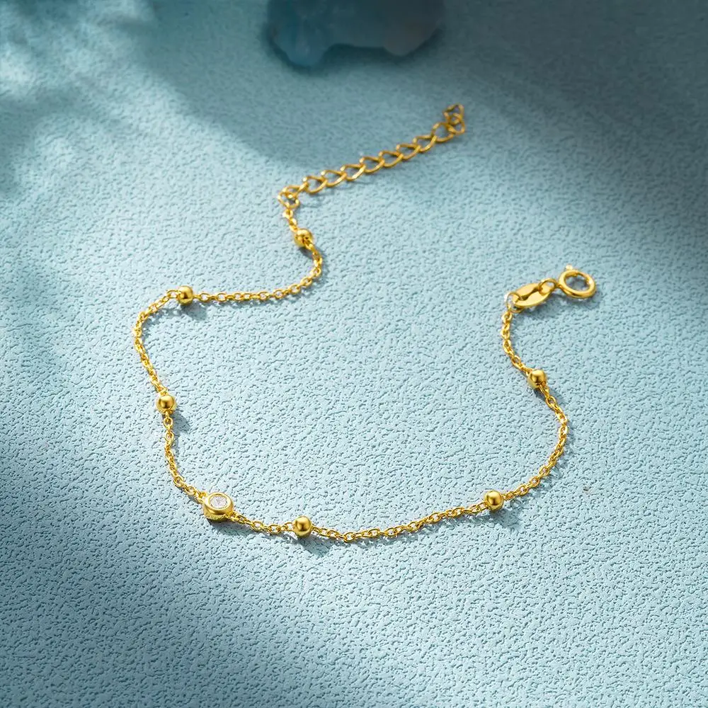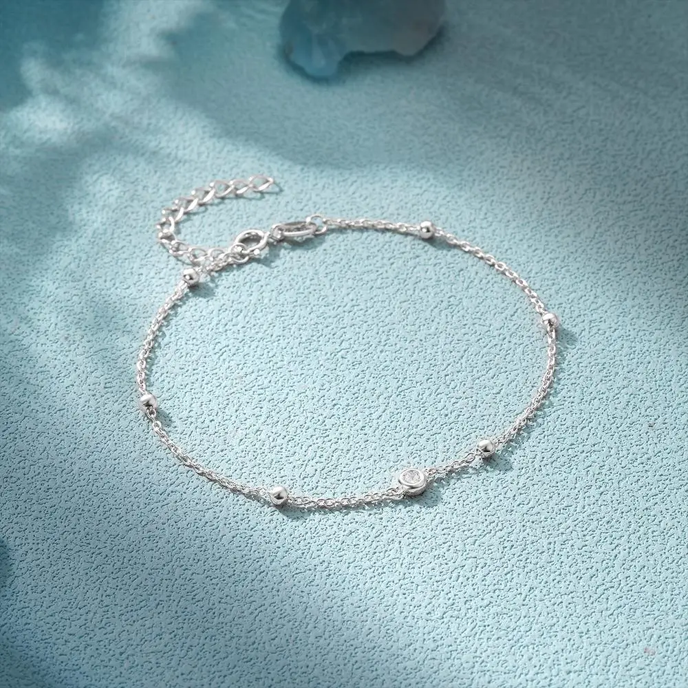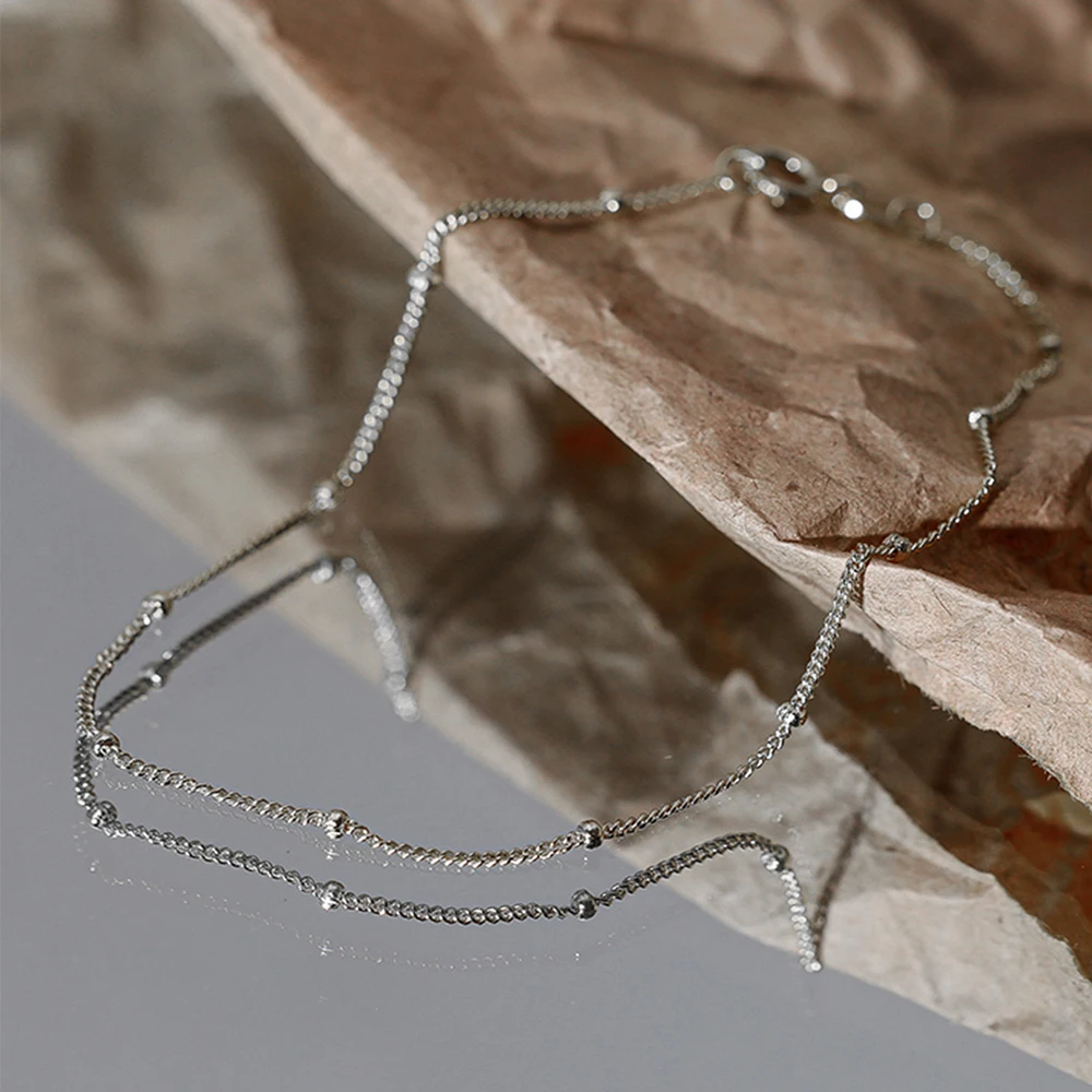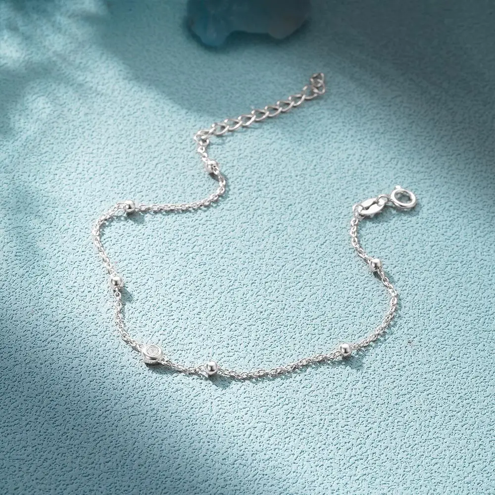 צמיד כסף סטרלינג 925 : צמיד שרשרת חרוזים דקים זעירים